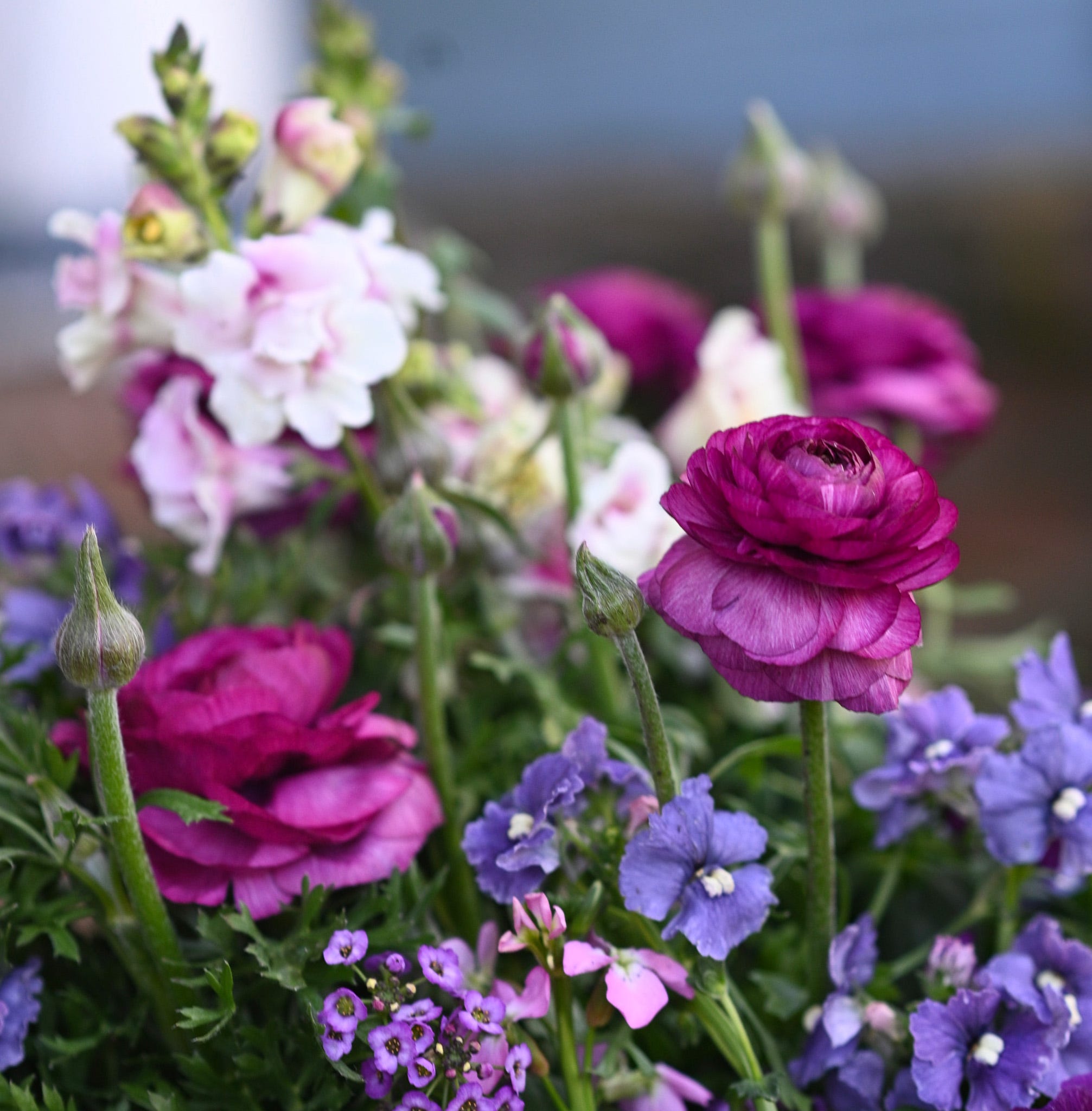 For this container, I wanted a timeless mix of flowers that felt as if they’d just been picked from a cottage garden—soft, whimsical, and enchanting. Early spring darlings like snapdragons, violas, and ranunculus bring that nostalgic, romantic, effortless vibe without feeling too fussy.
