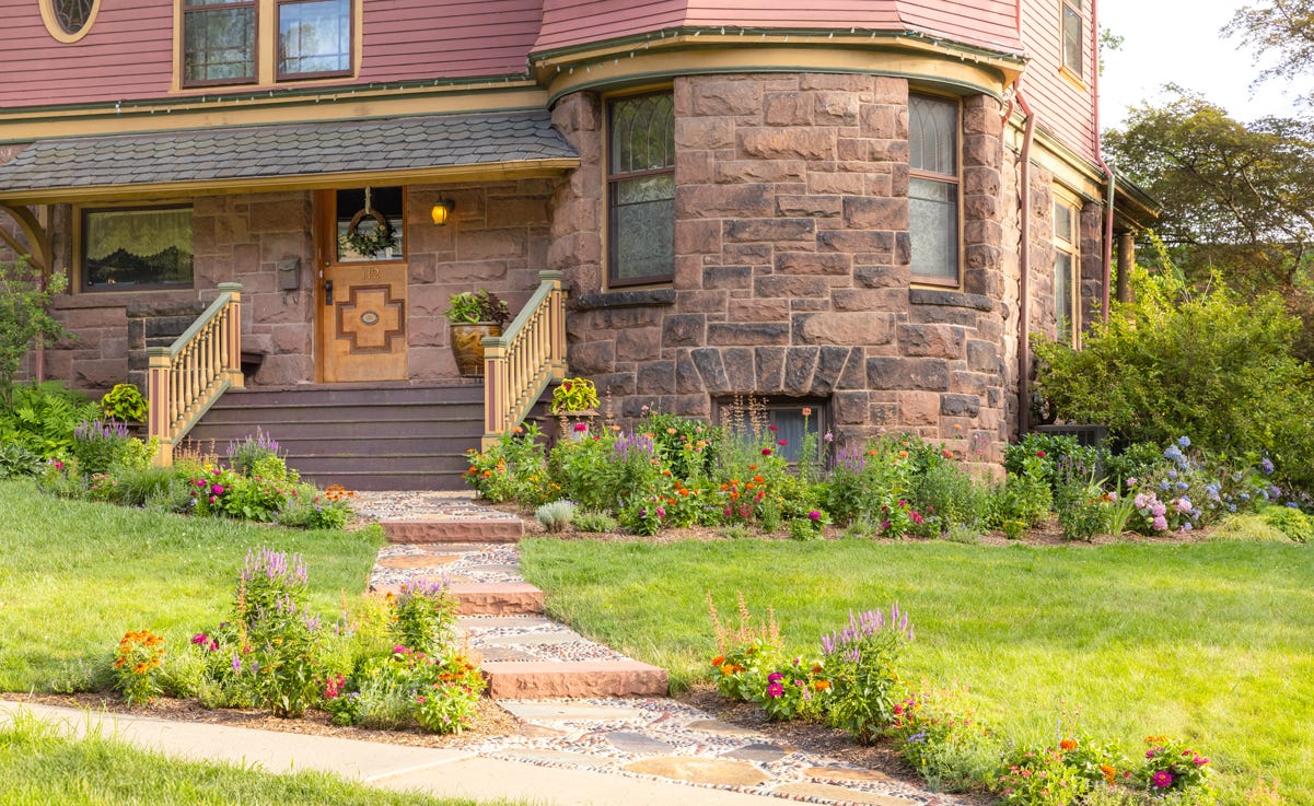 The result: A relaxed, meadow-inspired garden that gently frames the brick path and catches the eye from the street.